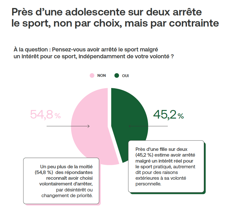 - 49 % des adolescentes arrêtent le sport avant 15 ans
