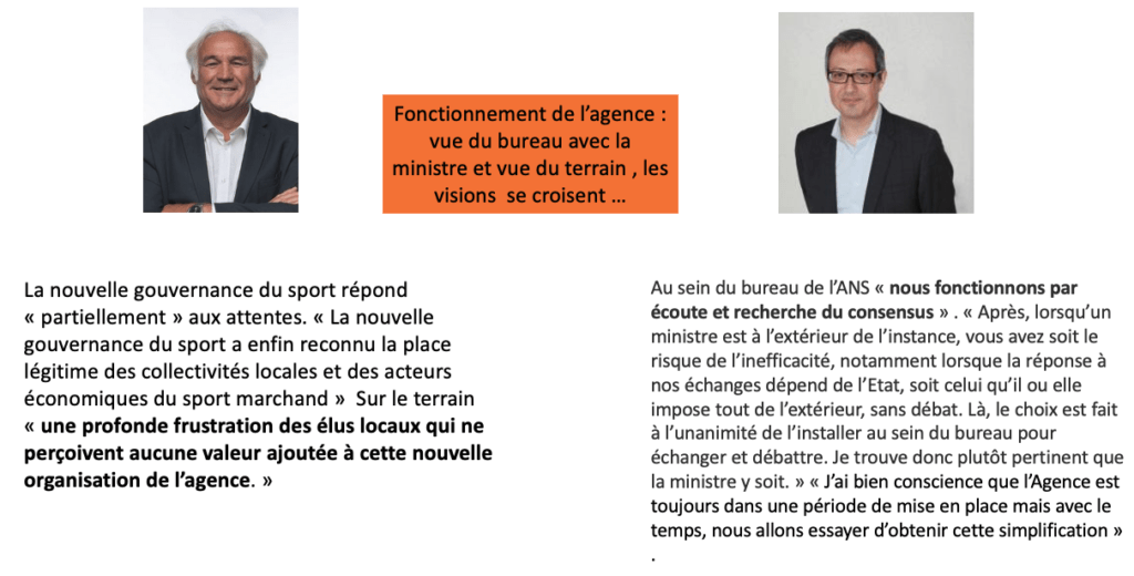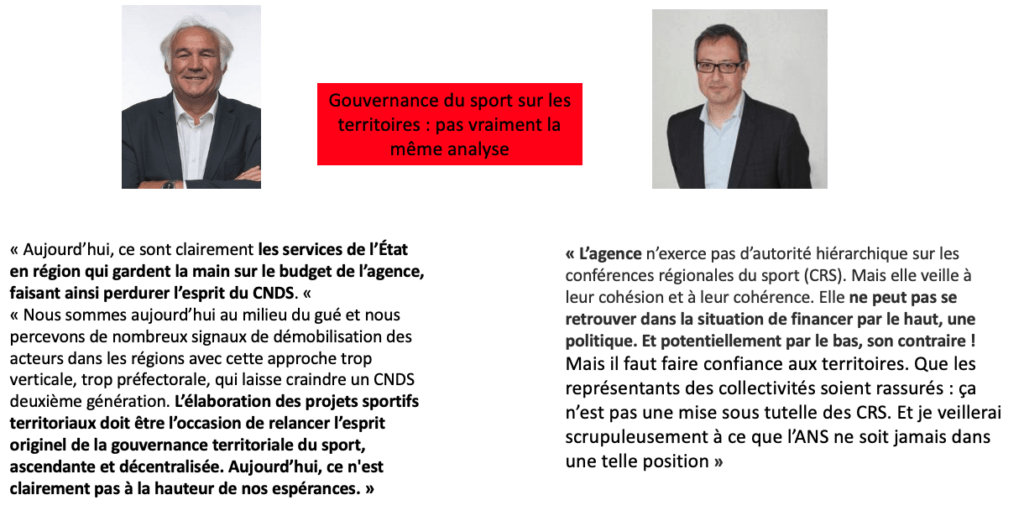 De l’autre en réponse à Apperé mais peut aussi à notre papier La ministre des sports reprend en main le bureau de l’Agence Nationale du Sport ou celui de Colin Miège Modification de la convention constitutive de l’Agence nationale du sport : quelles conséquences ? par Colin Miège , David Lazarus représentant de l’AMF au sein de l’ANS pour qui déclare dans une interview à la gazettes des communes « Les conférences régionales du sport ne sont pas mises sous tutelle »