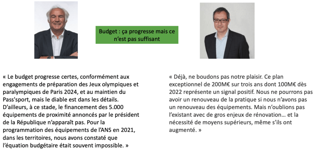 D’un coté Patrick Appéré président de l’Andes qui a donné une interview à Localtis « Il faut un plan Marshall des équipements sportifs structurants locaux »