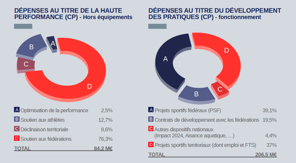 - 84,2 M€ pour la haute performance, dont 12,7 % de soutien aux athlètes.