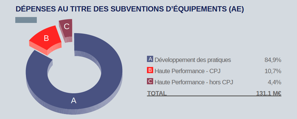 - 92,5 M€ sur le volet Haute Performance, dont 1 M€ aide aux projets d’équipements JOP.