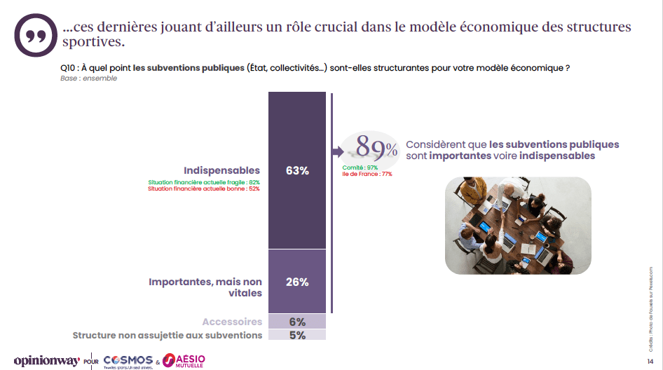 • 89 % considèrent les subventions importantes ou indispensables