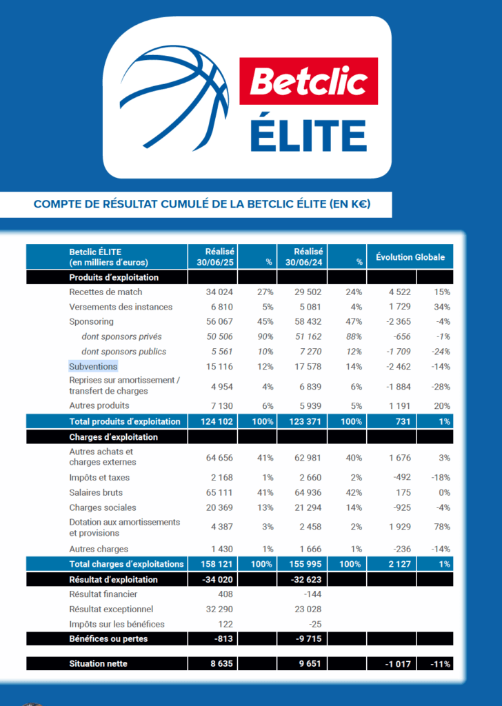 Mais derrière cette dynamique, la Betclic ÉLITE reste structurellement déficitaire à l’exploitation, en grande partie du fait des clubs engagés en Euroleague.