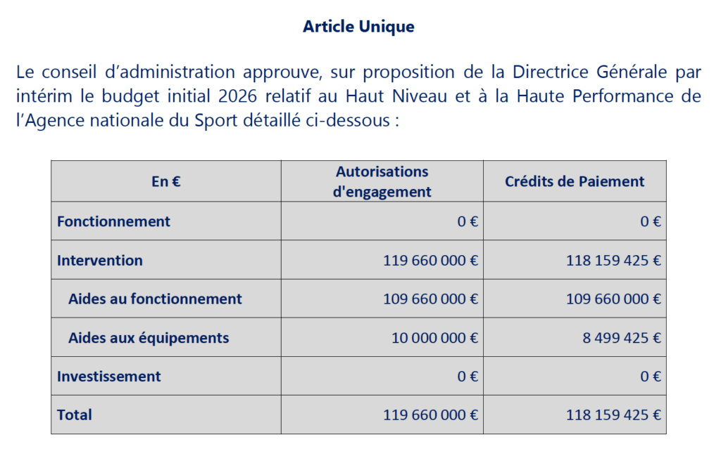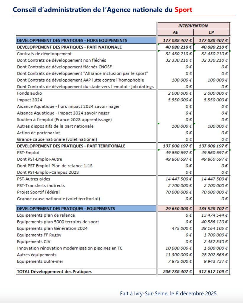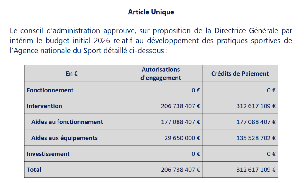 L’ANS a adopté son budget prévisionnel 2026. Si les AE sont préservés pour le haut niveau et la haute performance, ce sont en revanche les équipements sportifs qui trinquent sur le développement des pratiques.
