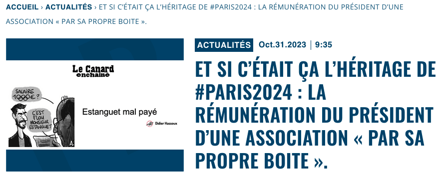 On en sait plus sur la rémunération de Tony Estanguet par sa propre boite comme l’a révélé le canard enchainé du 1er novembre.