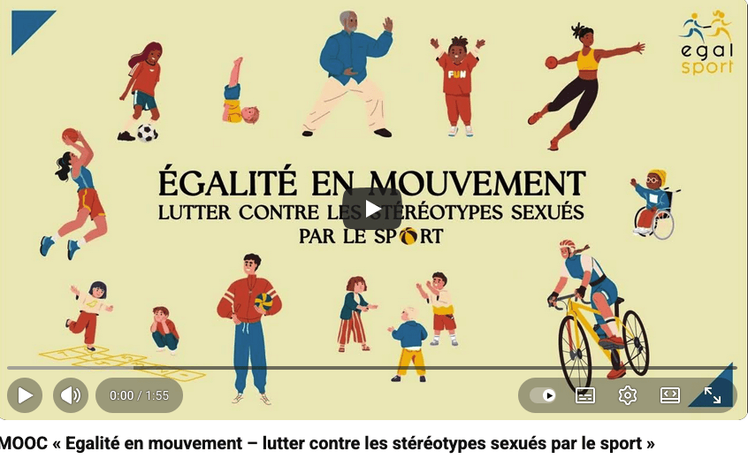 L’association Égal Sport a lancé le MOOC (« cours en ligne ouverts et massifs ») gratuit « Égalité en mouvement – Lutter contre les stéréotypes sexués par le sport ». Cette formation en ligne vise à sensibiliser et outiller tous ceux qui participent à l’éducation des enfants, dès la petite enfance.