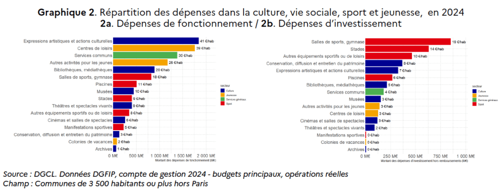 • Enfin, les manifestations sportives représentent 5 € par habitant en fonctionnement (dépenses d’investissement marginales).