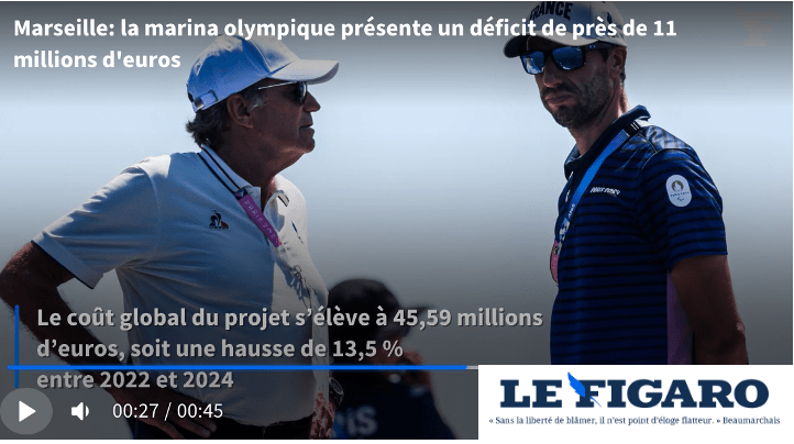 Dans un rapport révélé par Marsactu et que Le Figaro a pu consulter, la chambre régionale des comptes de Provence-Alpes-Côte d’Azur relève un trou dans le financement de la marina olympique, qui a accueilli les épreuves de voile à Marseille. La facture finale s’élève à 45,59 millions d’euros.