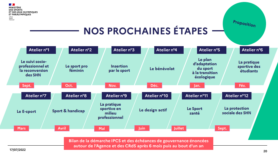 Un calendrier a été arrêté pour chaque étape et la mise en oeuvre des conclusions des ateliers. En outre un cycle d’ateliers sera lancé avec une fois par mois à l’invitation de la ministre des thématiques.