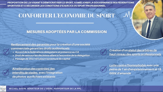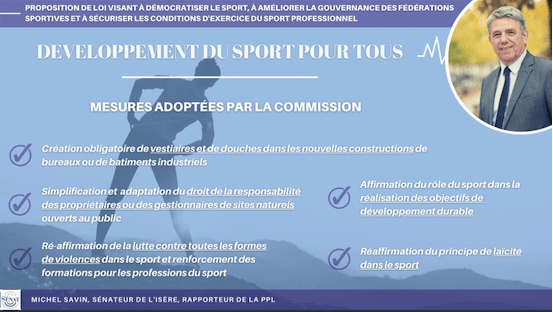 La PPL DÉMOCRATISER LE SPORT EN FRANCE substantiellement modifiée sous l’impulsion du Sénateur Savin