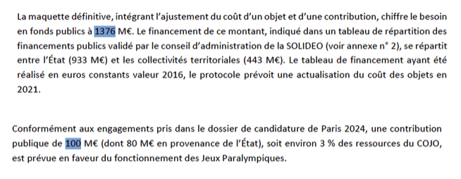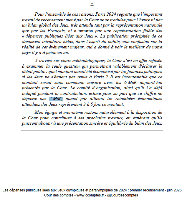 Le débat sur la méthode de calcul est essentiel. Comment la cour des comptes peut elle faire état d’absence de dérapage budgétaire alors que le cout a été mulitiplié par 4, sauf effectivement comme le soutien le COJO à remettre en cause la méthodologie de calcul. Un vrai cas d’école donc.