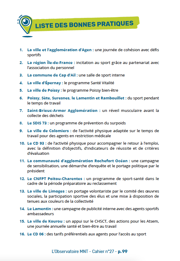 Le sport santé dans la fonction publique territoriale : recommandations, bonnes pratiques