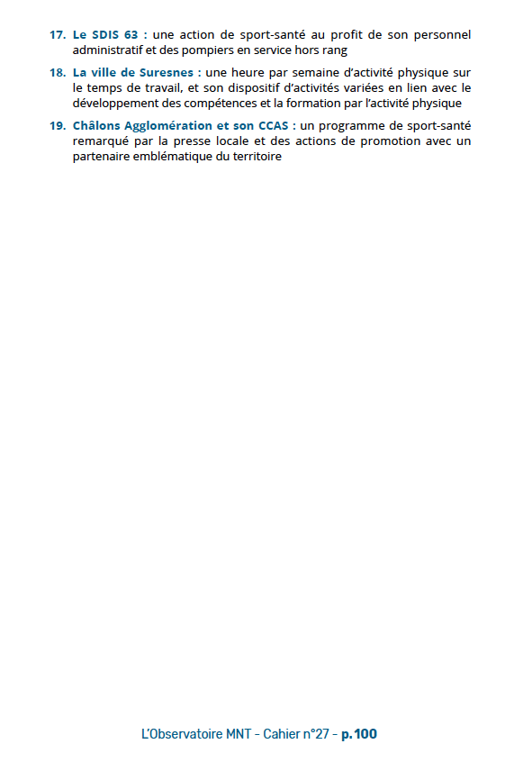 - sport-santé hors temps de travail : pause méridienne ou juste après la