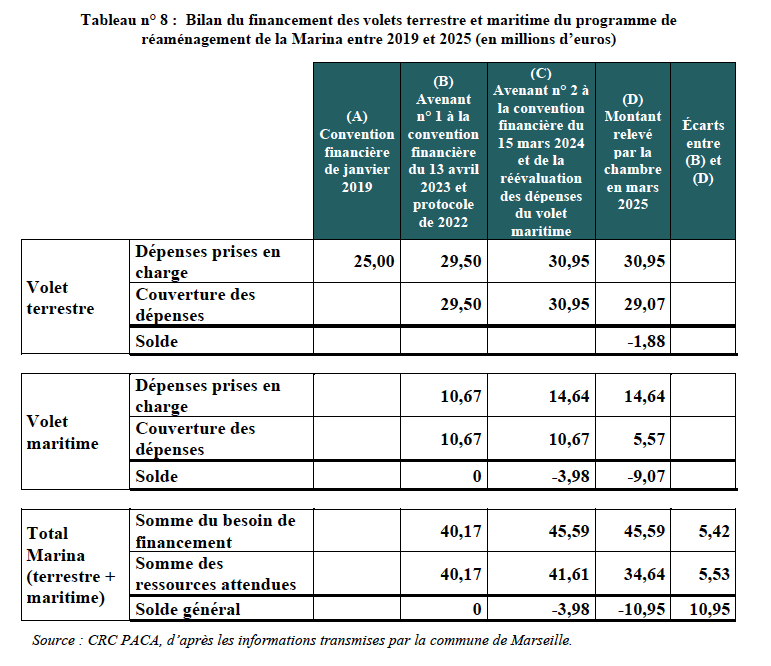 Le volet terrestre, supervisé par la SOLIDEO, représente 31 M€, en progression de près de 25 % depuis l’estimation initiale de 2016, tandis que le volet maritime, conduit par la commune, atteint 14,6 M€, en hausse de 37 %.