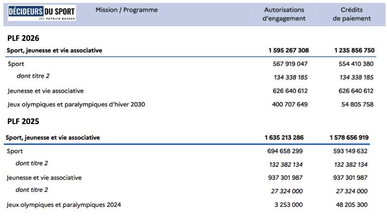 Accueil › Actualités › PLF 2026 : le budget des sports nettement à la baisse par rapport à 2025