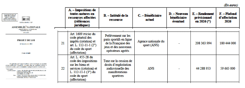 Les prélèvements en faveur de l’ANS s’établissent à 180 M$ pour la française des jeux et 59 M€ pour la taxe sur des droit audiovisuels … dont le rendement est de 44 M€.