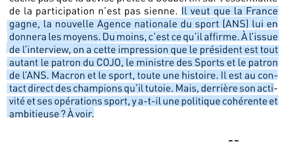 « À l’issue de l’interview, on a cette impression que le président est tout autant le patron du C0JO, le ministre des Sports et le patron de l’ANS. »