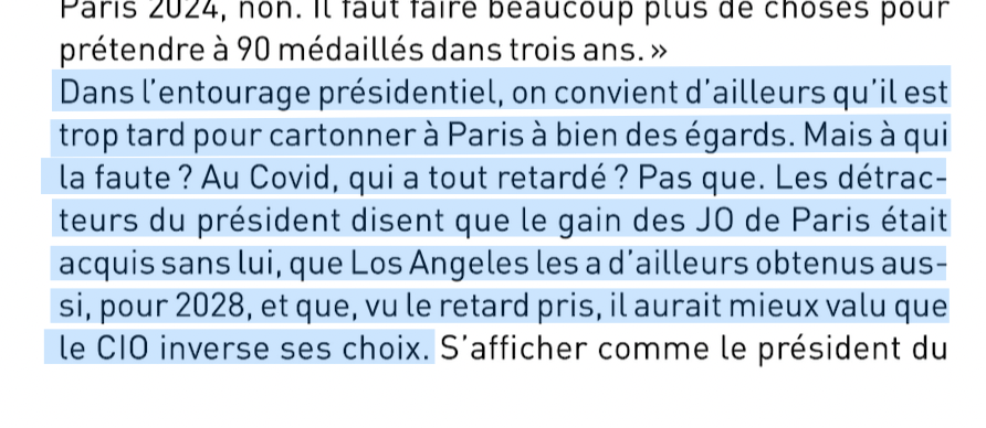 « Trop tard pour cartonner à Paris../… les JO de Paris était acquis sans lui …/… il aurait mieux valu que le CIO inverse ses choix » (Paris et LA)
