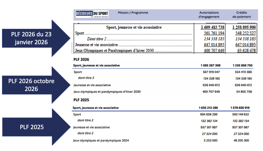 L’honneur est sauf, l’ amendement gouvernemental 3644 a rétabli le pass’sport pour les 6 13 ans avec 30 millions d’euros, sur le budget de la Jeunesse et de la vie associative. Sauf que le budget sport voté dans le cadre de la procédure 49-3 par l’assemblée nationale est lui à la baisse par rapport à la première PLF version octobre 2025. Certes ce n’est pas énorme mais ça baisse encore par rapport à la PLF 2026 d’octobre 2025 …