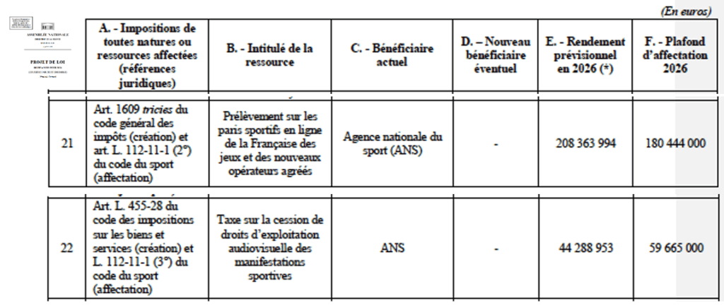 Pas d’évolution sur l’ ANS, le prélèvement sur les Paris sportifs confirmé à 1 milliard d’Euros = 1 041 745 542 précisément
