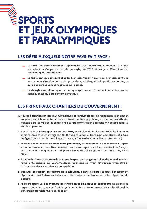 La feuille du route du ministère des sports
