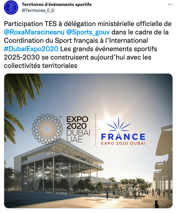 Présent et invité lors des grands évènements sportifs en france, TES est également présent à l’international comme en témoigne ce déplacement à Dubai aux cotés de Roxana Maracineanu ministre déléguée chargée des Sports dans le cadre de la nouvelle Coordination du Sport français à l’International.