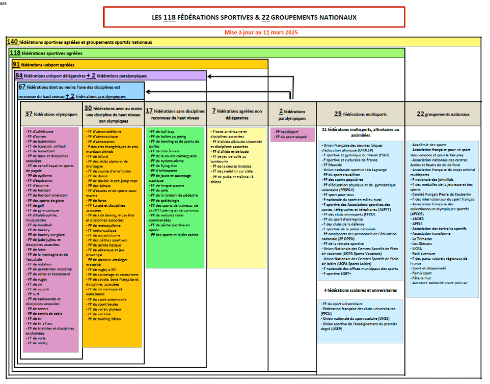 Selon Article L131-14 « dans chaque discipline sportive et pour une durée déterminée, une seule fédération agréée reçoit délégation du ministre chargé des sports.